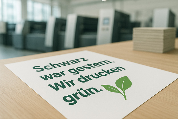 Mit unserer Green-Print-Initiative setzen wir auf zertifizierte, recycelte Papiere, klimabewussten Druck und umweltfreundliche Verpackung.